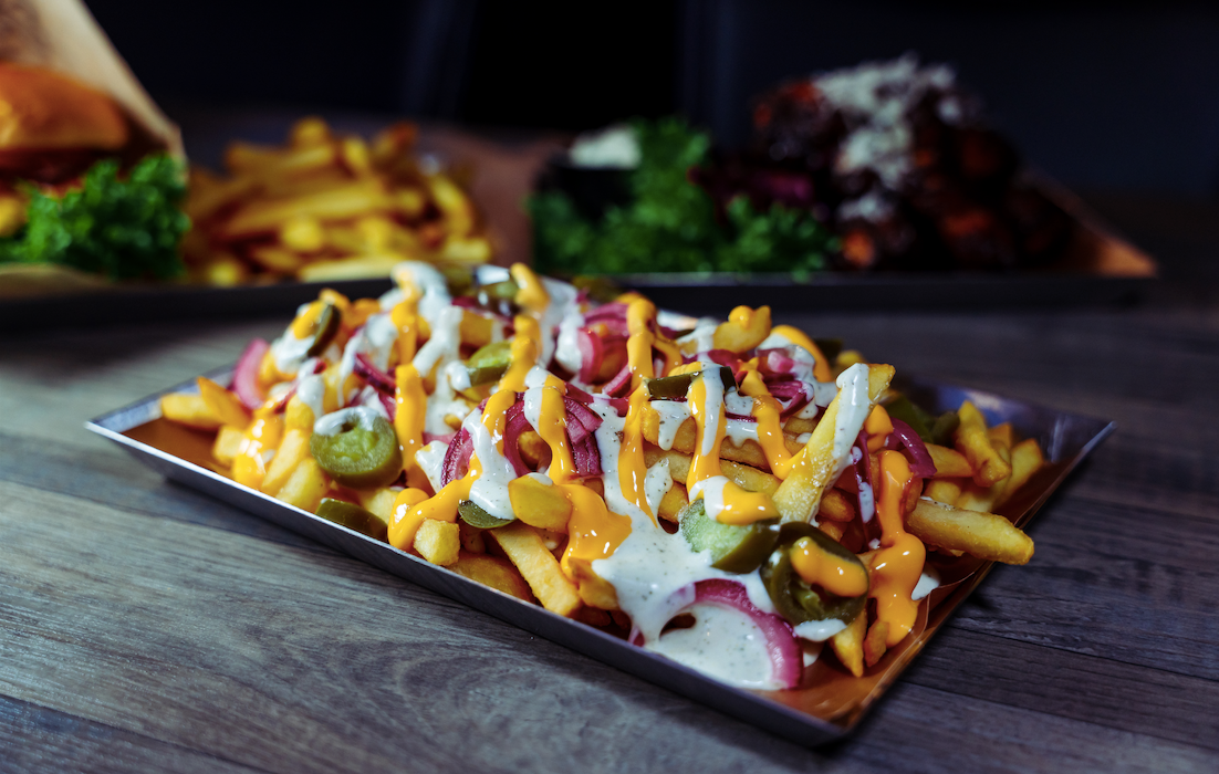 Välj smak, lägg till ditt protein och avsluta med hur du vill ha dina pommes.